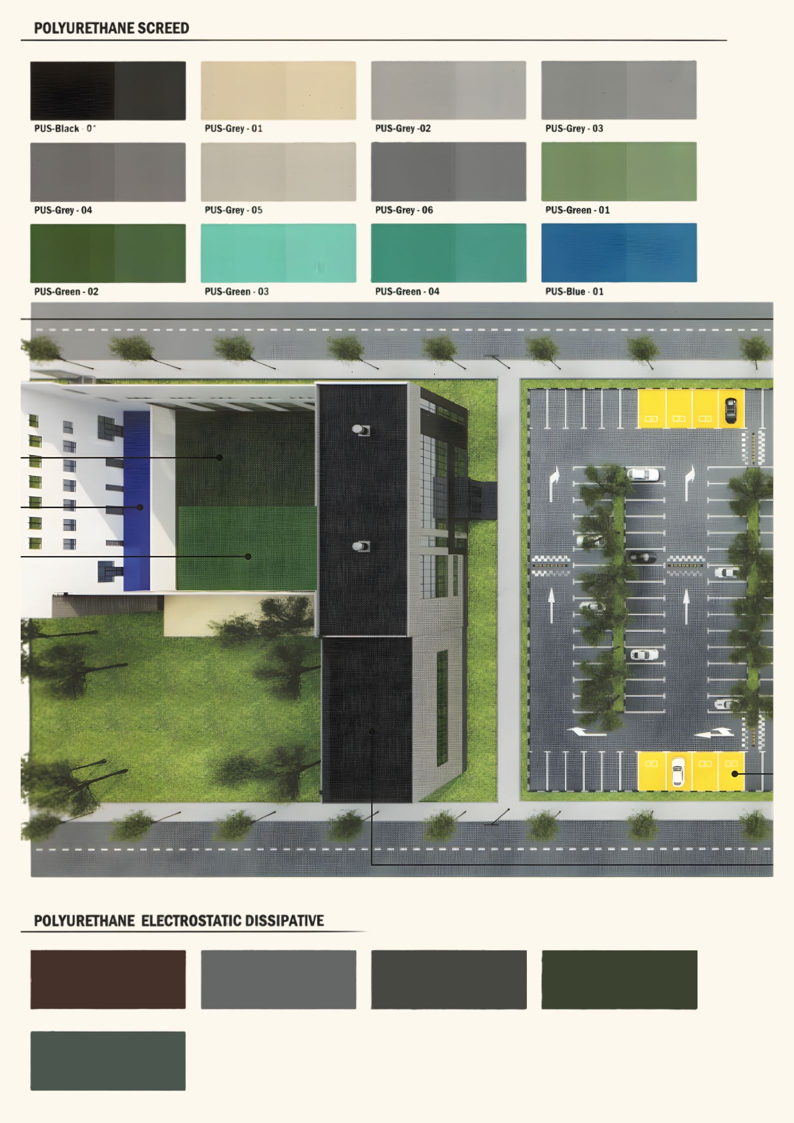 🔹 งานพื้น PU (Polyurethane) เหมาะกับพื้นที่ที่ต้องรับแรงกระแทกสูง หรือมีการเปลี่ยนแปลงอุณหภูมิ