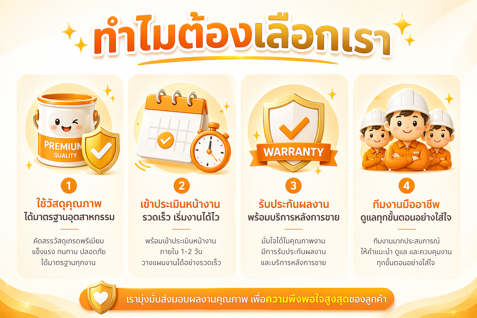 เราจึงคัดสรรวัสดุและเทคนิคที่ดีที่สุด เพื่อส่งมอบผลงานที่มีคุณภาพและได้มาตรฐานในทุกงาน